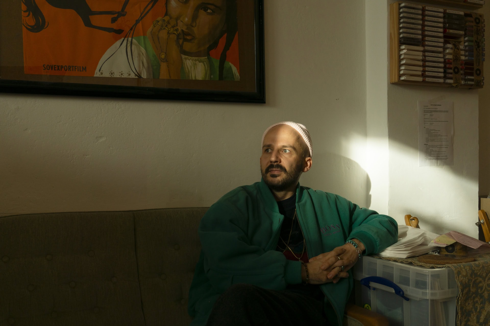 Record Label Habibi Funk Mitgründer Jannis Stürtz in seinem Büro in Berlin