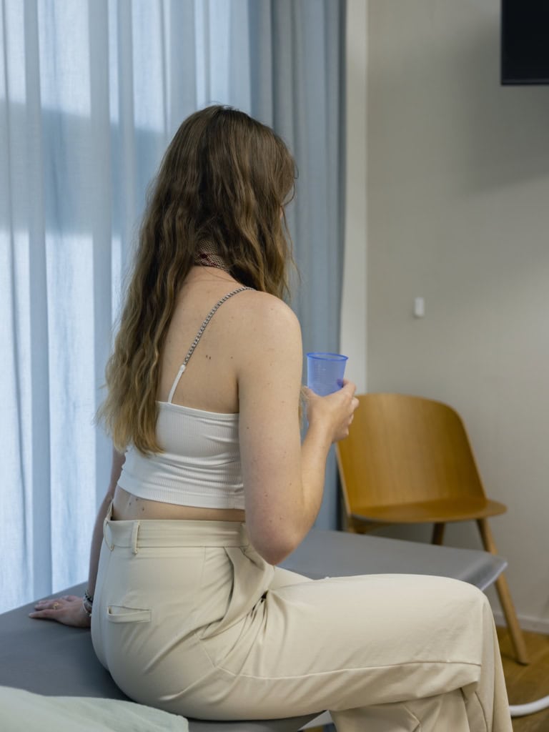 Eine Patientin nimmt in einer medizinischen Praxis Mifepriston ein. Dieses erste Medikament beendet die Schwangerschaft. Das zweite, Cytotec, wird zu Hause eingenommen und bewirkt Muskelkontraktionen, um das Schwangerschaftsgewebe auszustoßen.