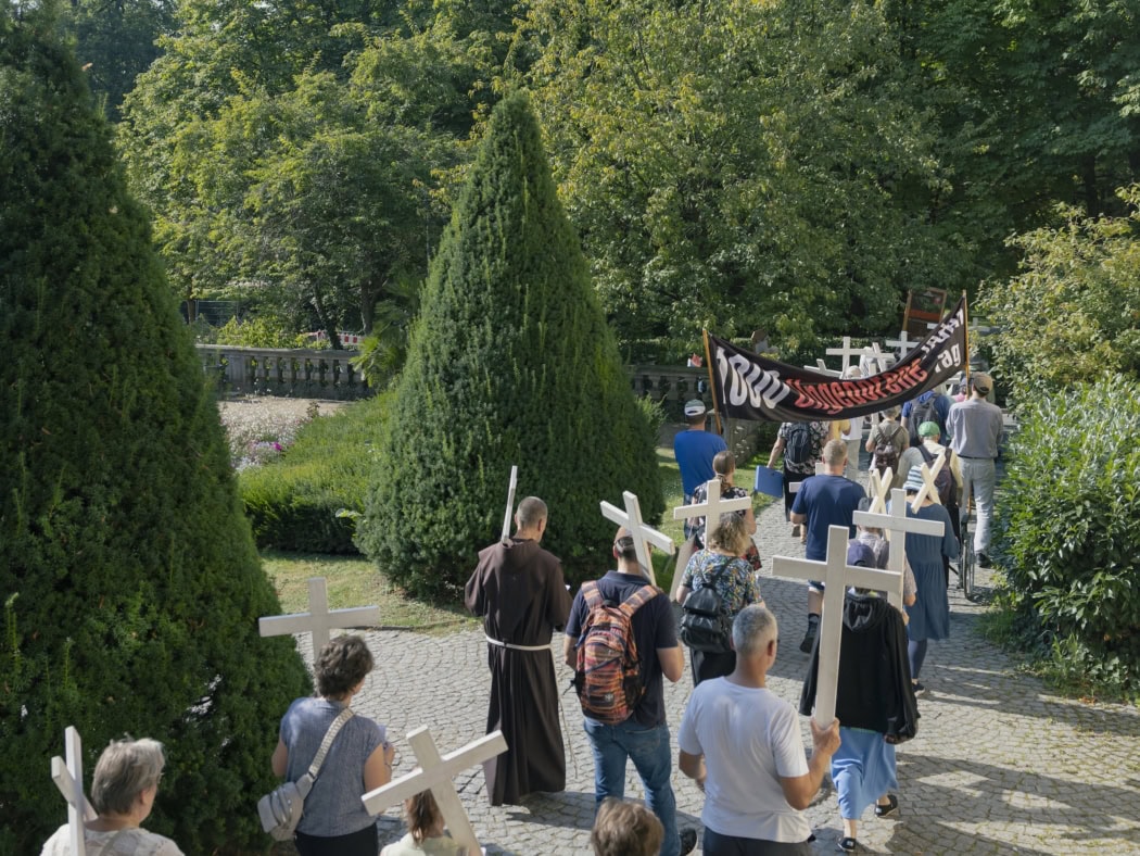 Teilnehmer*innen des Gebetsmarsches «1000 Kreuze für das Leben». Die Veranstaltung wird vom christlichen, überkonfessionellen Netzwerk «EuroProLife» organisiert. Dieses kritisiert die sinkende Geburtenrate: sie würde «unter dem für die Selbsterhaltung eines Volkes notwendigen Minimum» liegen.