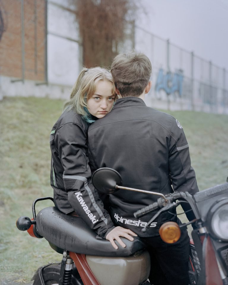 Foto: Ludwig Nikulski, Mathilda und Theo auf dem Moped. Greifswald, Dezember 2022.