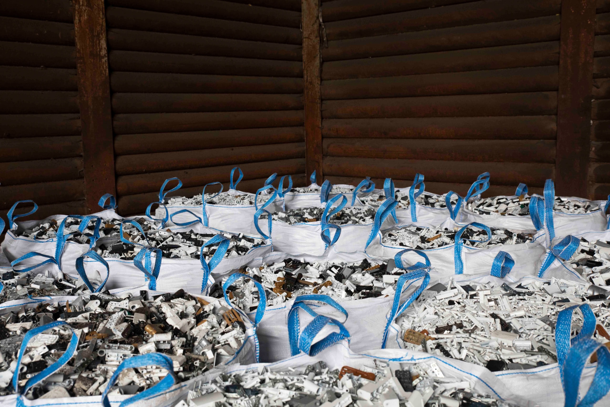 Auch auf dem TSR-Gelände reihen sich Berge von Altmetall aneinander. Ob gepresst oder zerkleinert, ob Kupfer oder Eisen. Jeder Schrotthaufen ist sorgfältig sortiert – wenn nötig, auch von Hand. Soeben ist eine ausgemusterte Montagelinie des Automobilherstellers Volkswagen eingetroffen. Zwei Mitarbeiter suchen Bremsscheiben aus den Kleinteilen heraus und stapeln sie in einem separaten Container.