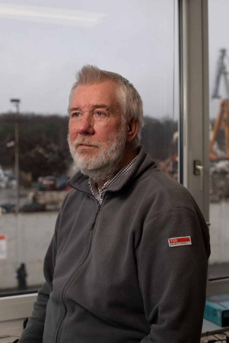 Von seinem Schreibtisch blickt der Niederlassungsleiter der TSR in Hannover direkt auf den Schrottplatz des Metallunternehmens. Kolberg weiß genau, wann neue Lieferungen auf dem Metallrecyclinghof eintreffen. «Überall, wo Maschinen stehen, fällt Schrott an», sagt er. Täglich verladen seine Mitarbeiter um die tausend Tonnen an Eisen- und Metallschrott. Insgesamt lagern hier am Nordhafen und der TSR-Niederlassung am Lindener Hafen rund hundertfünfzigtausend Tonnen Altmetall. Meist aus der Automobilindustrie oder einfach Produktionsabfall.